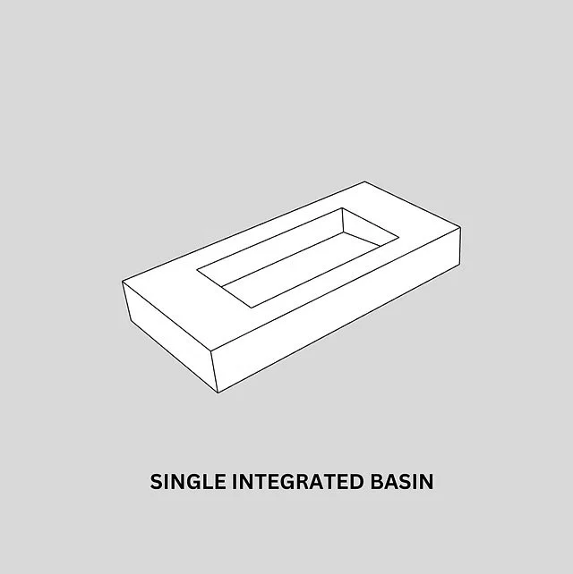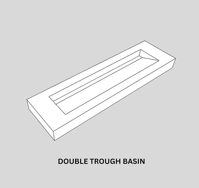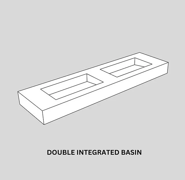 The double sink basin combines style and function, featuring two spacious basins for simultaneous use. Its clean, minimalist design suits modern bathrooms, while durable materials ensure longevity. Ample countertop space adds convenience, making it ideal for a his and hers bathroom.